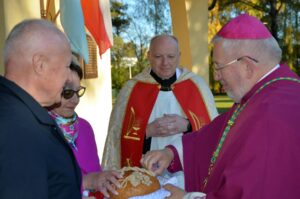 Składam serdeczne „Bóg zapłać” tym osobom, które podjęły trud przygotowania i większego uczestnictwa w tym parafialnym święcie. Dziękuję Panu Wójtowi, który wraz z małżonką witał Księdza Biskupa przed wejściem do Kościoła, jak również przedstawicielom wiosek za reprezentowanie swoich miejscowości poprzez czytanie modlitwy wiernych i niesienie darów podczas Mszy ingresowej. Bóg zapłać delegacjom, które w imieniu wszystkich parafian oraz wspólnot parafialnych witały Dostojnego Gościa.
